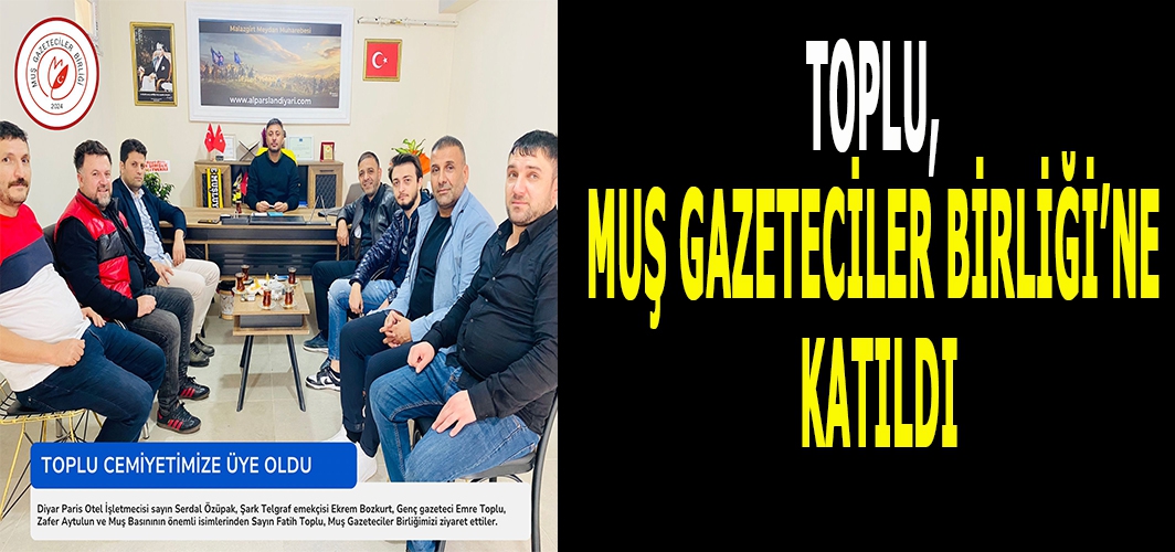 Muş Gazeteciler Birliğini ziyaret ederek Başkan Tuncay Çanga ve yönetim kurulu üyeleri ile görüşen Toplu, derneğe üye oldu. Yeni oluşumun memlekete önemli katkıları olacağına dikkat çeken Toplu, “öncelikle sizleri tebrik ediyorum, memleketimiz adına çok önemli bir eksikliği giderdiniz. Yazacağınız haberler, eleştiriler memleketimize olumlu anlamda büyük katkılar sağlayacak. Tebrik ediyor, başarılarınızın devamını diliyor, her zaman yanınızda olduğumu ifade etmek istiyorum.” diye konuştu.