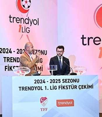 ALPARSLAN DİYARI- Türkiye Futbol Federasyonunun (TFF) Riva'da bulunan Hasan Doğan Milli Takımlar Kamp ve Eğitim Tesisleri'nde yapılan kura çekimine, TFF yönetim kurulu üyesi Mecnun Otyakmaz ile Trendyol 1. Lig'de mücadele edecek kulüplerin başkan ve yöneticileri katıldı.