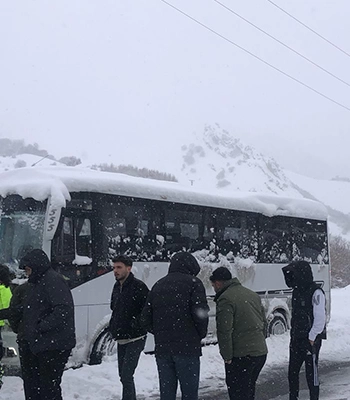 Yoğun kar ve tipi nedeniyle 29 kişinin içinde bulunduğu otobüs, Tunceli-Erzincan kara yolu Cankurtaran mevkisinde kara saplandı.