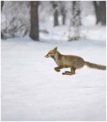 Kar kalınlığının yer yer 1 metreye ulaştığı ilçede aç kalan tilki, Sarıtosun köyü mevkisinde yiyecek bulmaya çalıştı.