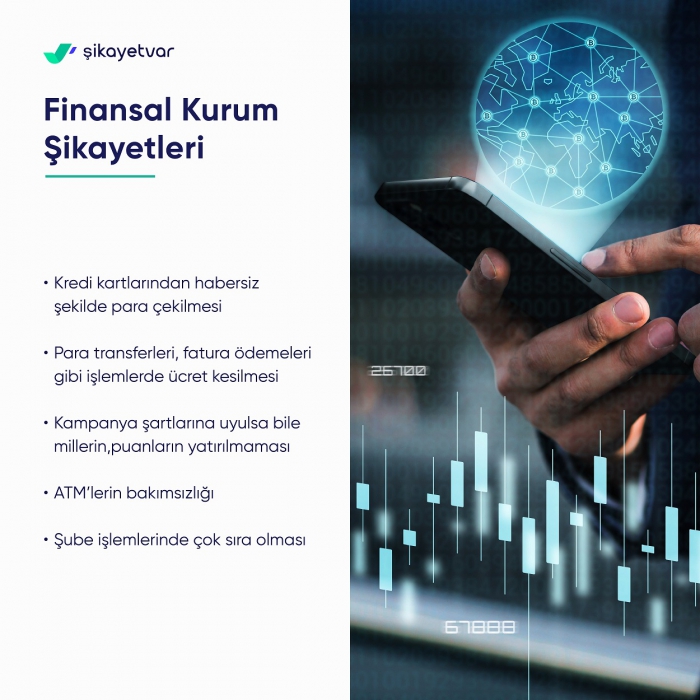Şikayetvar verilerine göre 2023’te en çok şikayet edilen ikinci sektör olan finans sektöründe kredi kartlarından habersiz şekilde para çekilmesi ve bankaların harcama itirazlarını olumlu sonuçlandırmaması güven sorununa sebep oldu. Ayrıca para transferleri, fatura ödemeleri gibi işlemlerde ücret kesilmesi ve kart aidatının alınması dile getirilen başka bir sorundu. Kampanya şartlarına uyulsa bile millerin, puanların yatırılmaması, ATM’lerin bakımsızlığı, para yuttuğunda iadelerin geç yapılması ve yeterli sayıda ATM bulunmaması şikayet edilen diğer konular oldu. Verilere göre iletişim platformlarıyla ilgili en çok şikayet edilen konularsa şöyle sıralandı: