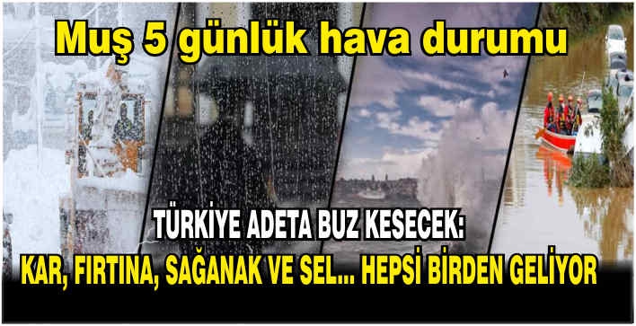 Meteoroloji Genel Müdürlüğü'nden alınan bilgilere göre Muş için 5 günlük hava durumu tahmini: