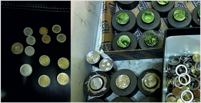 Söz konusu adrese düzenlenen operasyonda 947 adet sahte 2 avro madeni para, 61 parça para boyutlarına göre basma kalıbı olduğu değerlendirilen metal kalıplar, avro şekilleri olan metal plaka, 1050 farklı ebatlarda farklı renklerde içi boş halka, 200 farklı ebatlarda göbek, 1 lazer kesim cihazı,1 kompresörlü pres makinesi, 1 metal delmeye yarayan matkap ve ekipmanları, 1 ruhsatsız tabanca, 16 tablet uyuşturucu madde ele geçirildi. 6 zanlı gözaltına alındı.