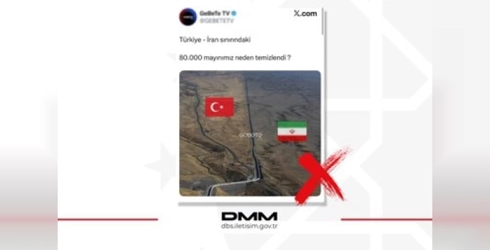 Dezenformasyonla Mücadele Merkezi (DMM), sosyal medyada yayılan "Türkiye-İran sınır hattında 80 bin mayın temizlendi" şeklindeki iddiaların gerçeği yansıtmadığını duyurdu.