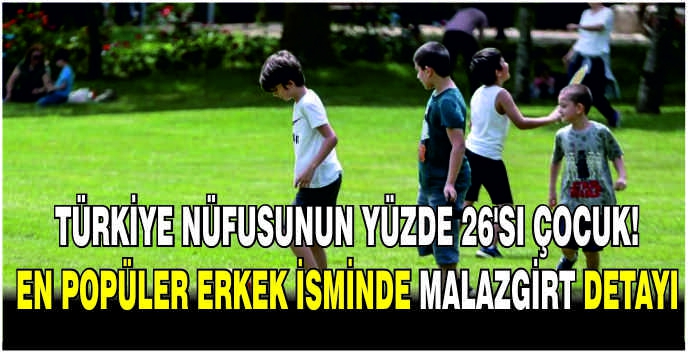 ALPARSLAN DİYARI-Buna göre, 2023 yıl sonu itibarıyla, Türkiye nüfusu 85 milyon 372 bin 377 kişi iken bunun 22 milyon 206 bin 34'ünü çocuklar oluşturdu. Çocuk nüfusun yüzde 51,3'ünü erkek çocuklar, yüzde 48,7'sini kız çocuklar oluşturdu. Birleşmiş Milletler tanımına göre 0-17 yaş grubunu içeren çocuk nüfus, 1970 yılında toplam nüfusun yüzde 48,5'ini oluştururken bu oran 1990 yılında yüzde 41,8 ve 2023 yılında yüzde 26,0 oldu.