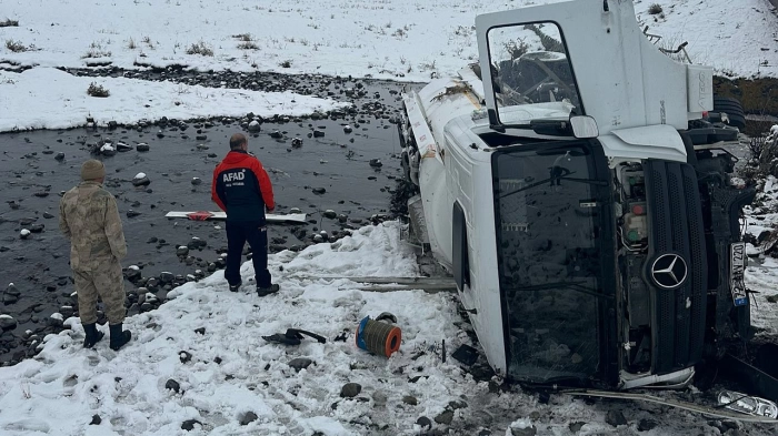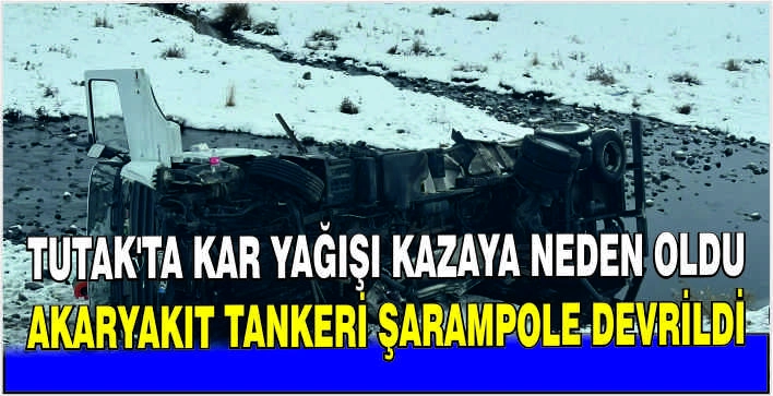 ALPARSLAN DİYARI-Olay, Tutak ilçesinde etkisini artıran kar yağışı sırasında meydana geldi. Akaryakıt taşıyan tanker, kaygan zemin nedeniyle sürücünün kontrolünden çıkarak şarampole yuvarlandı. Çevredeki vatandaşların durumu fark edip 112 Acil Çağrı Merkezine haber vermesi üzerine, olay yerine AFAD, Jandarma ve sağlık ekipleri sevk edildi.