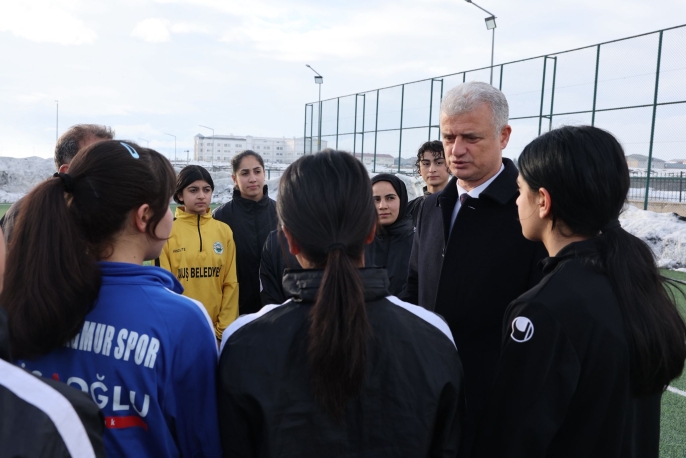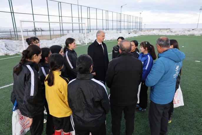 ALPARSLAN DİYARI- Gençlik ve Spor İl Müdürü Yusuf Kılıç, 1071 Sultan Alparslan Spor Kompleksi sentetik yüzeyli çim sahada antrenman yapan başarılı takımı ziyaret etti.