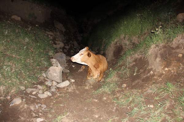 Çilli köyü Köprüköy mezrasında yaşayan Yakup Pektür'e ait inek, 200 metrelik uçurumdan yuvarlanarak dere yatağına düştü.