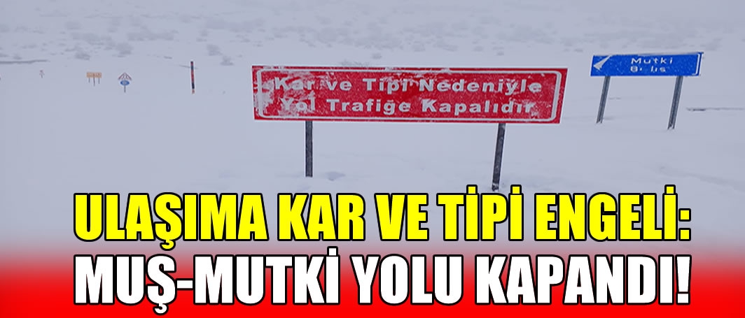 ALPARSLAN DİYARI- Muş’ta yoğun kar yağışı ve tipi, ulaşımı olumsuz etkiledi. Hasköy ilçesini Mutki İlçesine bağlayan karayolu biriken kar ve tipi nedeniyle yol trafiğe kapatıldı. Karayolları 113. Şube Şefliği ekipleri, kar nedeniyle kapanan yolların açılması için hummalı bir şekilde çalışmalarını sürdürüyor.