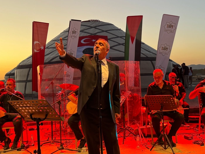 Sahneye çıktığında hayranlarını selamlayan Yavuz Bingöl, Malazgirt’in Türk tarihi açısından taşıdığı öneme vurgu yaparak: