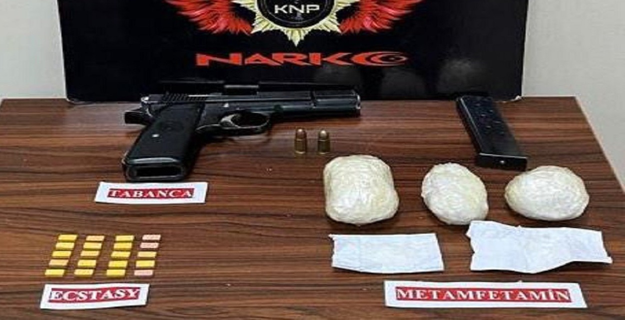 Narkotik dedektör köpek "Daxo"nun da yer aldığı aramada, otomobilde güneş gözlüğü kutusuna gizlenmiş 273,46 gram esrar, 177,28 gram metamfetamin ve 20 uyuşturucu hap ile 3 ruhsatsız tabanca ve şarjör ele geçirildi.