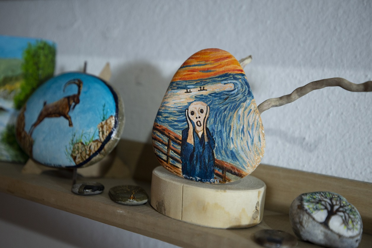 Zamanının çoğunu İnönü Mahallesi'ndeki evinin atölyesinde geçiren Ozan, son olarak taş ve dal parçalarına resim çizmeye karar verdi.