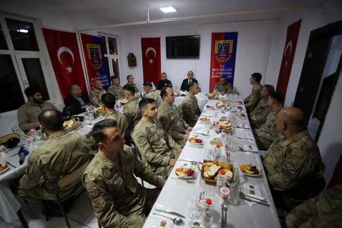 ALPARSLAN DİYARI- İl Jandarma Komutanı Albay Yılmaz Kırgel ve İl Emniyet Müdürü Serkan Karaman ile birlikte Mercimekkale Karakolu’nu ziyaret eden Vali Çakır, burada jandarma personeliyle yemekte bir araya geldi. Güvenlik güçlerinin fedakârlıkla görev yaptığını vurgulayan Çakır, “Sizler, halkımızın huzuru ve güvenliği için gece gündüz demeden çalışıyorsunuz. Yeni yılın sizlere ve ailelerinize sağlık, mutluluk ve başarı getirmesini temenni ediyorum” dedi.
