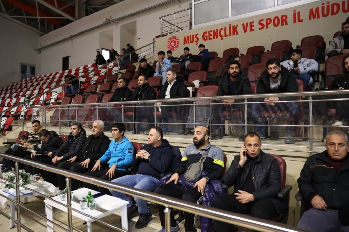 ALPARSLAN DİYARI- Muş Valisi Avni Çakır, Vali Yardımcısı Cihat Abukan ile birlikte karşılaşmayı Muş Yeni Spor Salonu’nda tribünden takip ederek takıma destek verdi.