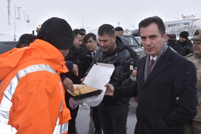 Vali Karakaya, İl Jandarma Komutanı Tuğgeneral Zafer Tombul, İl Emniyet Müdürü Ortaç Şekeroğlu, İl Özel İdaresi Genel Sekreteri Adem Aydoğdu ile merkeze bağlı Değirmenaltı köyü ve Güroymak ilçesi Yazıkonak köyü yolunda çalışan ekipleri ziyaret etti.
