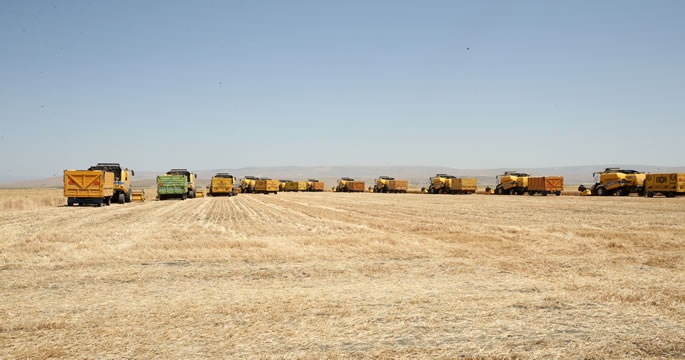 Konuşmaların ardından 11 biçerdöverle ilk hasat yapıldı.