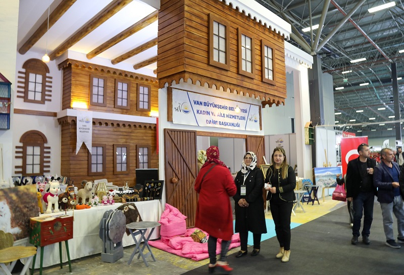 Van Büyükşehir Belediyesi Kadın ve Aile Hizmetleri Dairesi Başkanlığı kursiyerleri tarafından hazırlanan yöresel elbiseler, hediyelik ve el sanatları eşyaları da fuarda tanıtıldı.