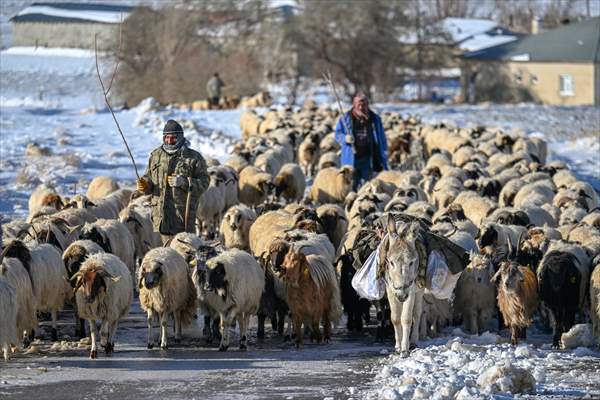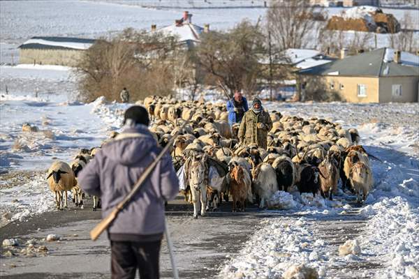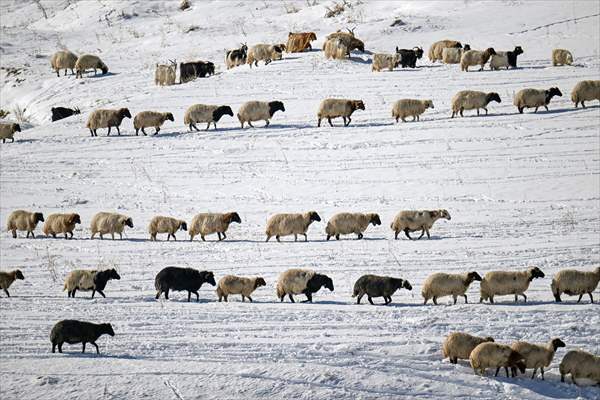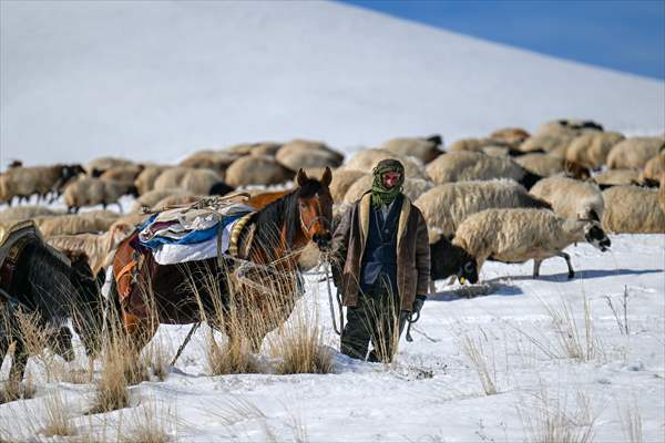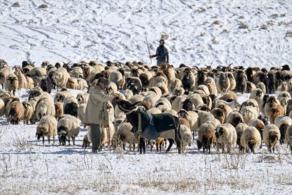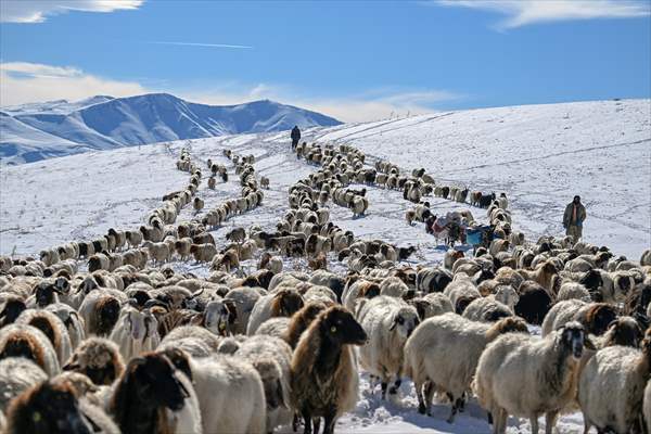 Günler süren yolculuklarında zorlu doğa koşullarıyla da mücadele eden besiciler, arazilerin karla kaplanması nedeniyle hayvanlarını beslemekte sıkıntı yaşadı.
