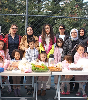 ALPARSLAN DİYARI- Hatuniye Mahallesi'ndeki bir sitenin bahçesindeki kermeste çocuklar, ailelerinin yaptığı pasta ve yemek çeşitlerini satışa sundu.