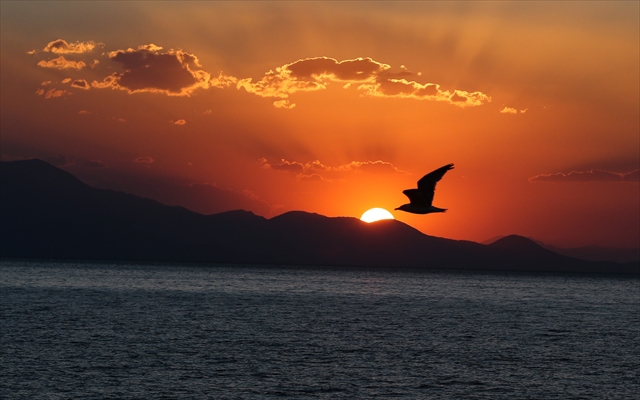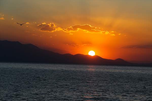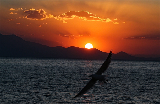 ALPARSLAN DİYARI- Van Gölü'nde gün batımını görenler oluşturduğu manzaraya kendini kaptırdı.