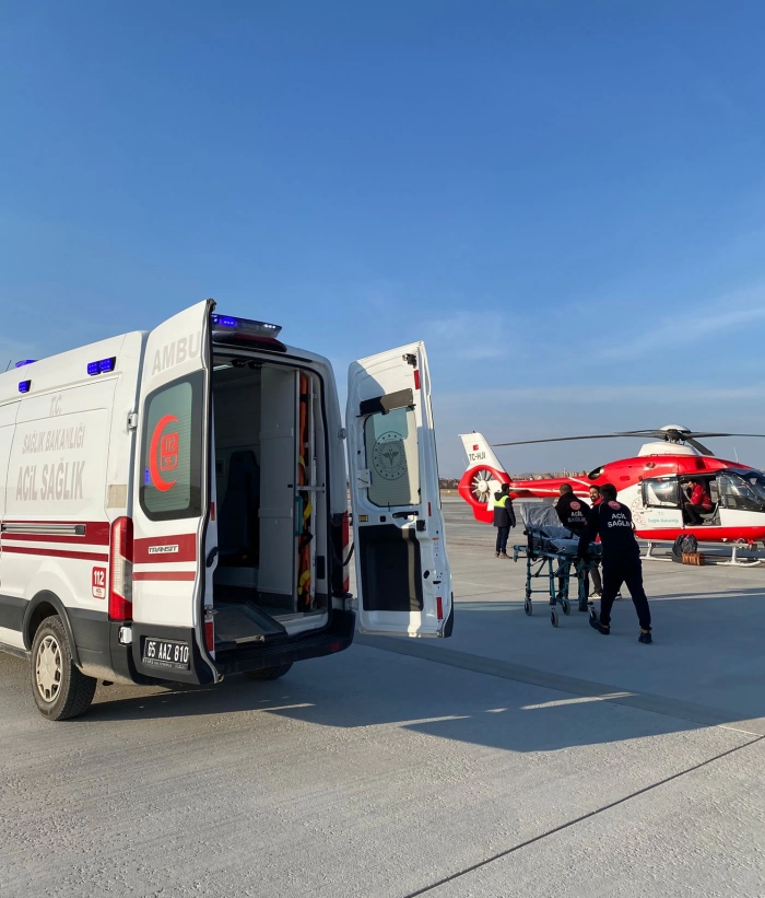 Bunun üzerine ilçeye yönlendirilen ambulans helikoptere alınan kadın, Van Eğitim ve Araştırma Hastanesine kaldırıldı.