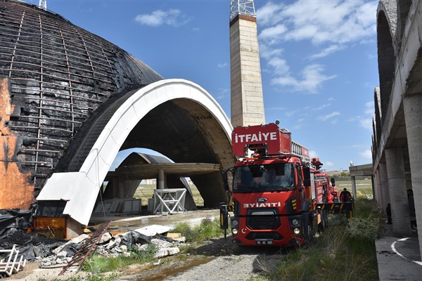 Van Yüzüncü Yıl Üniversitesi yerleşkesinde inşaatı devam eden caminin kubbesinde çıkan yangın kontrol altına alındı.