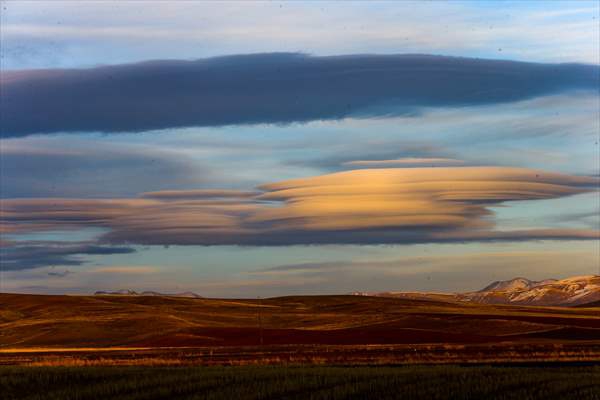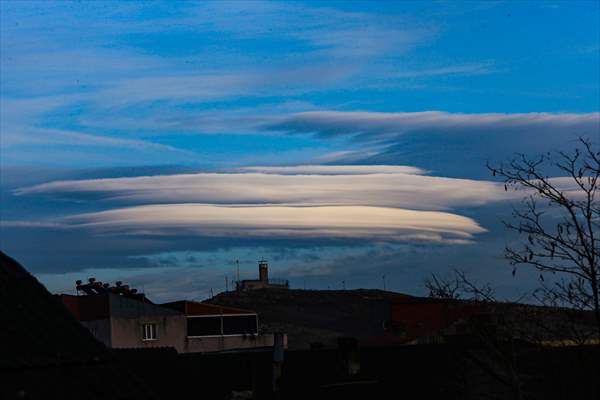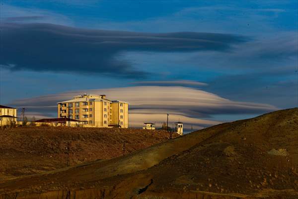 ALPARSLAN DİYARI- Lenticular (merceksi) bulutlar kümesi olarak bilinen bulutların ilginç görüntüsü Van’da ortaya çıktı. Bazı kesimlerde ufo bulutları olarak da isimlendirilen mercek bulutlar, bilimsel olarak "Lenticular" şeklinde isimlendiriliyor. Çok nadir olarak gözlemlenen mercek bulutu, Van’da görsel şölen sundu.