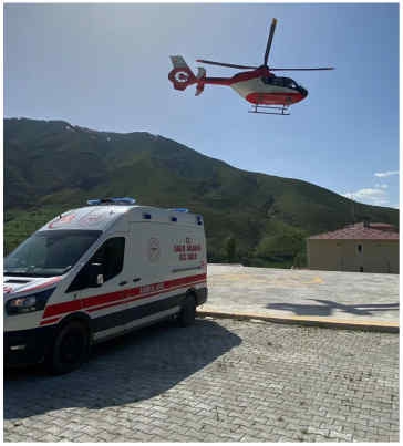 Bunun üzerine ilçeye yönlendirilen ambulans helikoptere alınan hasta, Van Eğitim ve Araştırma Hastanesine nakledildi.