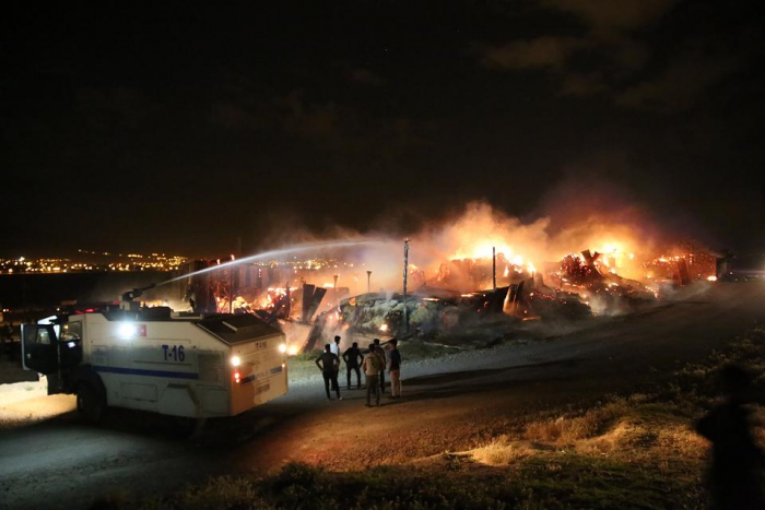Polis ekiplerinin güvenlik önlemi aldığı olay yerinde dumandan etkilenen 10 itfaiye erine 112 Acil Sağlık ekipleri müdahale etti.