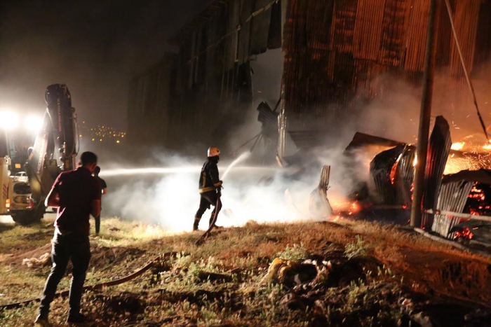 Sitedeki iş yerlerinde bilinmeyen nedenle çıkan yangın, rüzgarın da etkisiyle kısa sürede büyüdü.