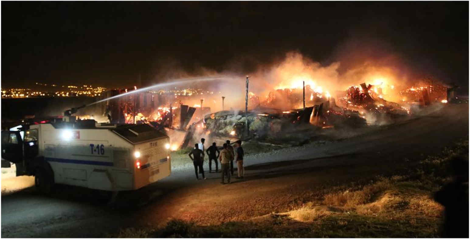 Van Emniyet Müdürlüğü ekipleri de Toplumsal Olaylara Müdahale Araçları (TOMA) ile yangını söndürme çalışmalarına destek verdi.