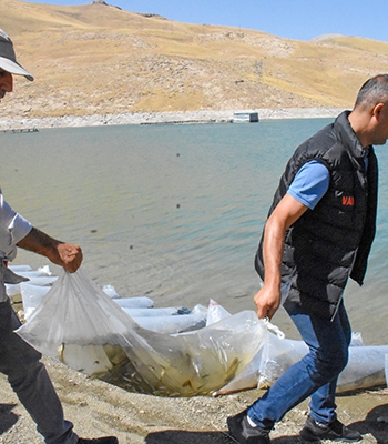 Bu kapsamda, Elazığ İl Tarım ve Orman Müdürlüğü bünyesindeki Keban Su Ürünleri Üretim Tesisi'nden getirilen sazan yavruları, Van'daki 6 su kaynağına salındı.