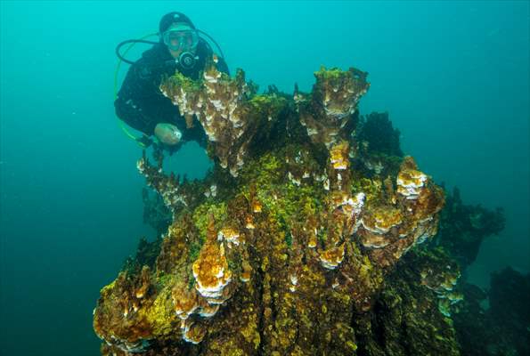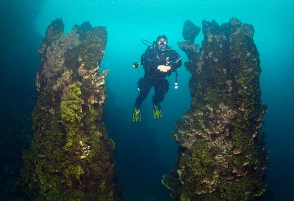 ALPARSLAN DİYARI- Su altı belgesel yapımcısı ve görüntü yönetmeni Tahsin Ceylan ile ekibi, Cumhuriyet'in 100. yılı dolayısıyla Van Gölü'ne özel dalış gerçekleştirerek mikrobiyalitleri görüntüledi.