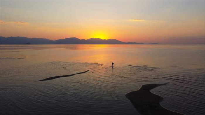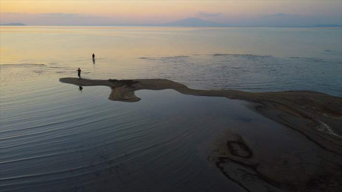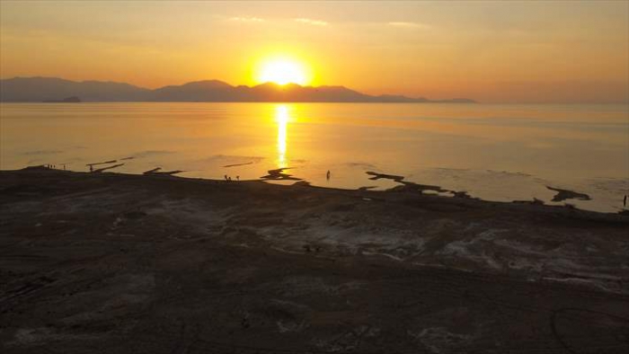 Edremit ilçesi Dilkaya Mahallesi'ndeki kıyıda ortaya çıkan adacıklar, doğaseverlerin ilgisini çekiyor. Günbatımı sırasında adacıklar ve gölün oluşturduğu güzel görüntü havadan görüntülendi.