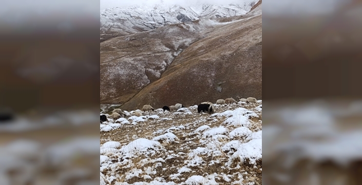 Yaylada koyunlarını otlatan bazı çiftçiler, sabah kar manzarasıyla karşılaştı.