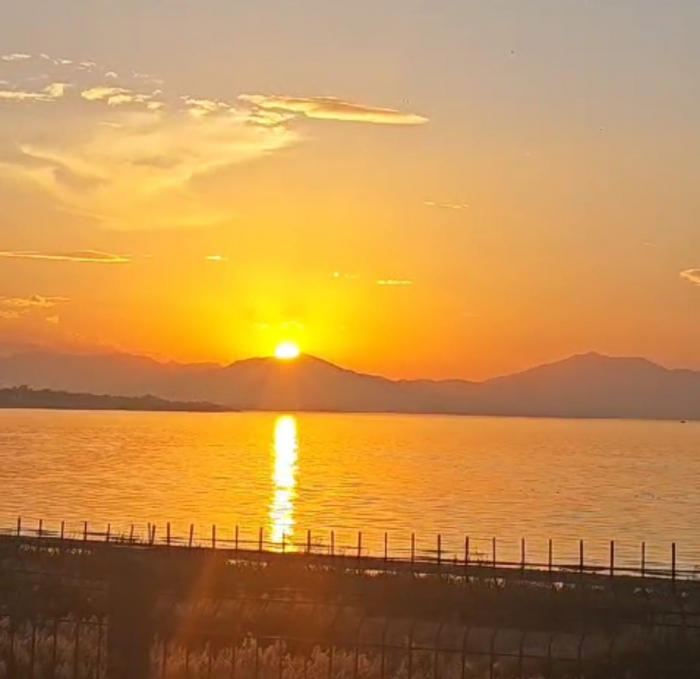 ALPARSLAN DİYARI- Van Gölü'nün kıyısında gün batımının büyüleyici manzarası yaşanırken, gökyüzünde beliren bulut formasyonları dikkat çekti. Bulutların oluşturduğu iki gözü andıran görüntü, vatandaşların ilgisini topladı ve birçok kişi bu ilginç anı ölümsüzleştirmek için telefonlarına sarıldı.