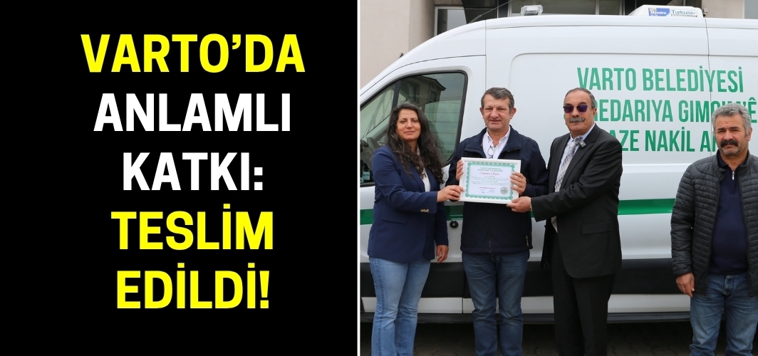 ALPARSLAN DİYARI- Vartolu iş insanlarının memleketlerine olan vefa örneği, anlamlı bir bağışla taçlandı. İlçe hizmetlerinde kullanılmak üzere büyük bir ihtiyacı karşılayacak olan cenaze nakil aracı, iş insanları Mehmet Kaçar, Veysel Önder, İlhami Koç, Cihan Orhan, Fevzi Eker ve Sami Apak'ın katkılarıyla Varto Belediyesi envanterine katıldı.