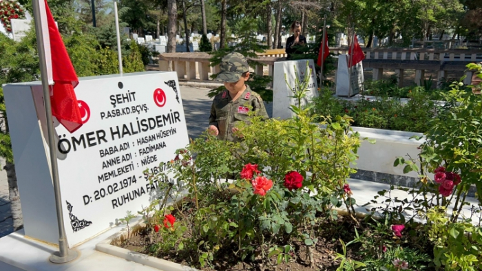 Şehidin kabrini ziyarete İstanbul'dan gelen Tuncay Demir de darbe girişiminden bir yıl sonra 15 Temmuz'da doğan oğluna" Ömer Halis" ismini verdiğini söyledi.