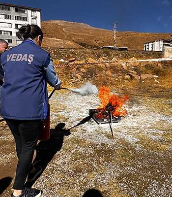 ALPARSLAN DİYARI- VEDAŞ Bitlis İl Müdürlüğü binasında İtfaiye Müdürlüğü ekiplerinin desteğiyle düzenlenen tatbikatta, olası yangın durumunda yapılması gerekenler anlatıldı.