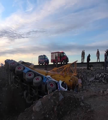 ALPARSLAN DİYARI-Hacı Bayram Börcek'in kullandığı vinç, Siverek-Diyarbakır kara yolunun 5. kilometresinde sürücünün direksiyon hakimiyetini kaybetmesi sonucu devrildi.