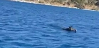 Muğla'nın Bodrum ilçesi açıklarında bir yaban domuzu, denizde yüzerken görüntülendi.