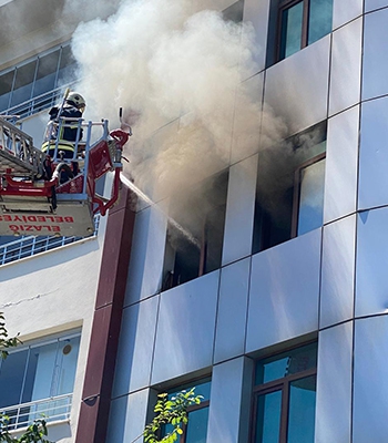 İtfaiye ekipleri, duman nedeniyle binanın 5. katında mahsur kalan 4 kişiyi merdiven yardımıyla tahliye etti.