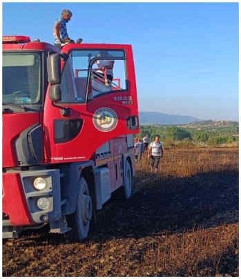 Yaklaşık 1 saatlik çalışma sonucu söndürülen yangında yaklaşık 6 dönüm buğday ekili arazide zarar meydana geldi.
