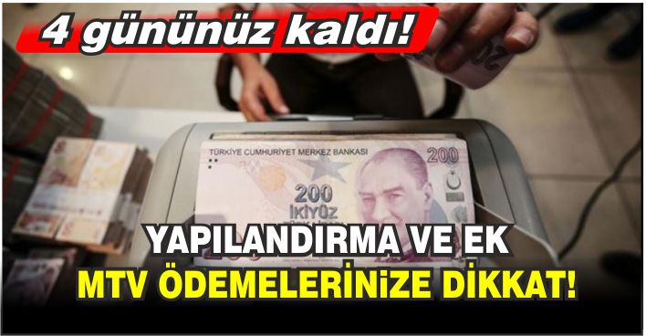Ek motorlu taşıtlar vergisinin (MTV) ilk taksitinin ödeme süresi de 31 Ağustos'ta sona eriyor. Ek MTV'yi ödemeyen, trafikten çekme, hurdaya ve yurt dışına çıkarma nedeniyle tescil kaydı kapatma işlemini gerçekleştiremeyecek.