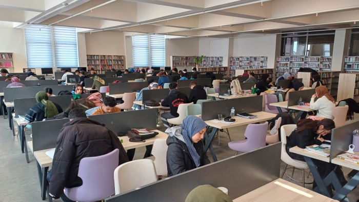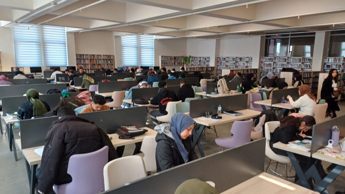 ALPASLAN DİYARI- Öğrencilerin sıklıkla ziyaret ederek ders çalıştığı kütüphanede haftanın 7 günü de yoğunluk yaşanıyor.