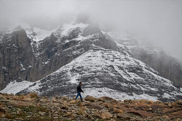 Van-Bahçesaray karayolu üzerinde bulunan Karabet Geçidi’ne mevsimin ilk karı yağdı. Van'da aralıklarla yağan yağmur, yüksek kesimlerde yerini kara bıraktı.