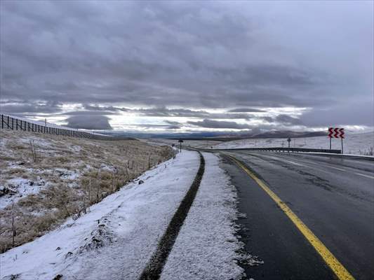 ALPARSLAN DİYARI- Ardahan genelinde hava sıcaklığının düşmesi sonucu yüksek rakımlı Türkgözü-Posof-Damal kara yolunda kar yağışı etkili oldu.