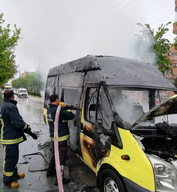 Olayda, minibüs tamamen yandı.