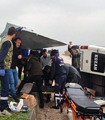 ALPARSLAN DİYARI-Adana'nın Kozan ilçesinin Tırmıl mevkiinde yağış nedeniyle kayganlaşan yolda refüje çarparak devrilen yolcu minibüsündeki 8 kişi yaralandı. Umut E. yönetimindeki yolcu minibüsü refüje çarparak devrilmesi üzerine 8 yolcu yaralandı. İhbar üzerine olay yerine 112 sağlık ekipleri ve polis ekipleri sevk edildi. Yaralılar hastaneye kaldırılırken kazayla ilgili soruşturma başlatıldı.