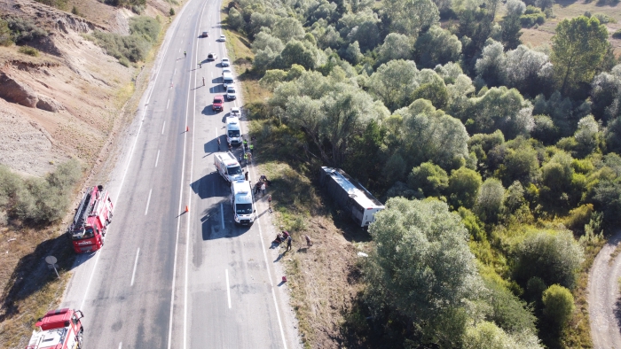 ALPARSLAN DİYARI- Sürücüsünün kimliği henüz öğrenilemeyen 34 TR 386 plakalı yolcu otobüsü, Erzincan-Sivas kara yolu Kızıldağ mevkisi Gemecik köyü yakınlarında kontrolden çıkarak devrildi.